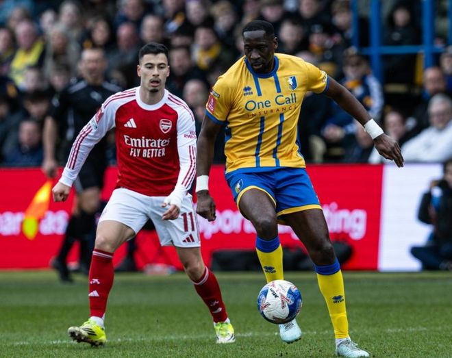 下半场易边再战。50分钟,曼斯菲尔德扳平比分。威尔-埃文斯抢断后带球狂飙,过掉防守球员,杀入禁区,低射破门,一气呵成!双方回到了同一起跑线。第62分钟,阿森纳进行换人调整,埃泽和廷贝尔替补上场,换下哈弗茨和萨蒙。这次换人起到立竿见影的效果。只过了4分钟,替补神兵埃泽就抽射破门,帮助阿森纳再次领先。阿尔特塔真是神换人。第79分钟,麦克劳克林假摔,被出示黄牌。最终,阿森纳2-1淘汰曼斯菲尔德。